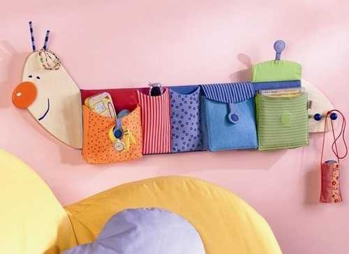 Кармашки стильно и модно выглядят на стене в детской16. Пластиковый органайзер