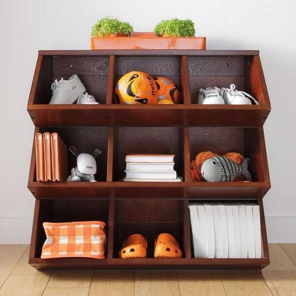 Если вы пытаетесь справиться с беспорядком в вашем доме, важно иметь строго отведённое место для каждой вещи. На помощь вам придёт многоцелевой стеллаж от Brookstone. Несколько отсеков помогут подобрать место для каждой вещички ребенка, тем более такая конструкция не займет много места. При желании можно адаптировать эту идею для прихожей, и использовать как полку для хранения обуви.
