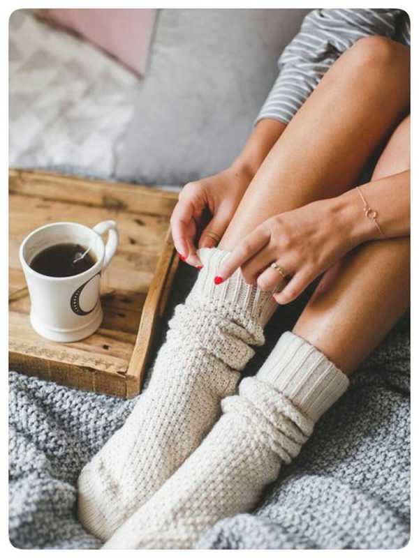 2. У вас нет вязаных подушек, вязаных пледов (особенно пледов Hygge loops — плед крупной вязки), вязаных чехлов на кружки и чайники, вязаных носков с оленями, вязаного свитера Oversize (безразмерный), длинного вязаного шарфа и вязаной объемной шапки. Это обязательно.
