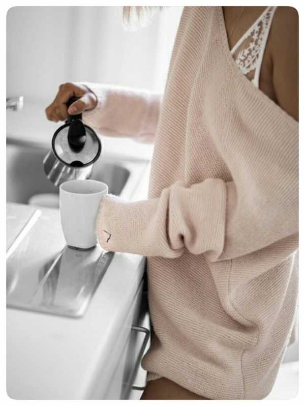 Мягкая вязаная одежда тёплых тонов — основная составляющая стиля хюгге.