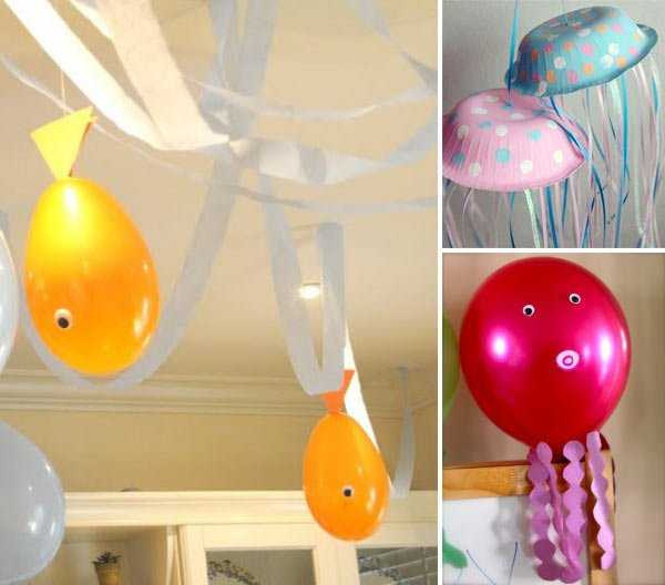 Порада: з кульок можна зробити тварин і чоловічків – і прикрасити різні кути дитячої кімнати. Такий дизайн є особливо актуальним, якщо ви дотримуєтеся певної тематики (наприклад, для морського стилю підійдуть повітряні і легкі рибки).