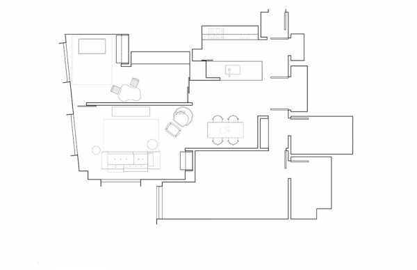 Кроме необычной планировки, которая построена на объединении нескольких зон общего пользования, удивляет то, что все стены, потолки и полы в этом доме окрашены исключительно в белый цвет. На этом фоне броские детали выглядят очень уместно и оригинально, существенно преображая слишком стерильное пространство.