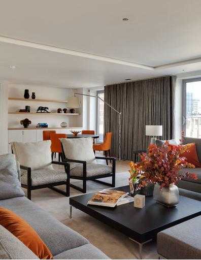 Яркий интерьер квартиры выглядит одновременно живо и элегантно. Именно так можно описать совместный проект специалистов архитектурного бюро Form Studio и дизайнера Элизабет Бауман, которые занимались оформлением апартаментов, расположенных в лондонском районе Bankside.