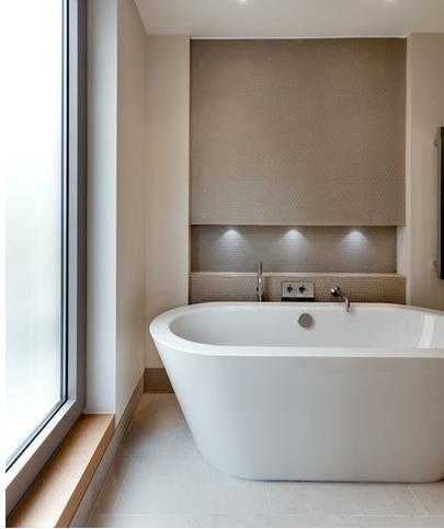 В ванной стоит обратить внимание на красивую сантехнику и встроенную подсветку