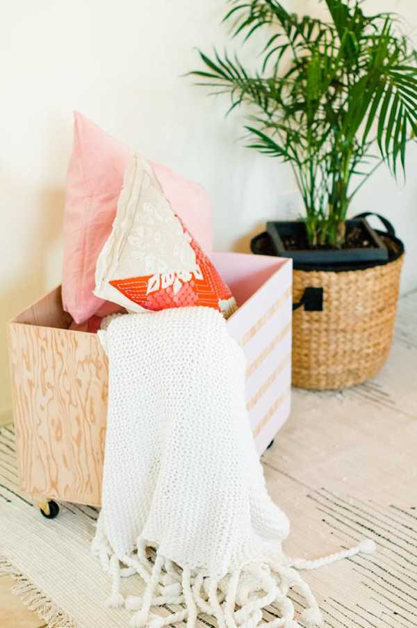 Вот и все! Простой и стильный ящик для хранения вещей готов. В него можно складывать постельное белье, небольшие подушки и прочий хлам, которому раньше не находилось места.