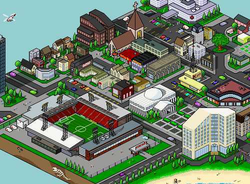 Часть города. Пиксель-арт. Автор: Juan Manuel Daporta