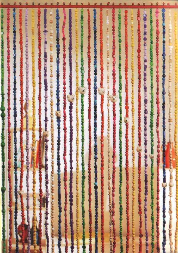Если приобрести висюльки из цветных бусинок или фигурок маленьких зверьков, можно изготовить веселую и оригинальную штору для детской комнаты. Балконный проем украсят прозрачные стеклярусы, которые станут красиво переливаться от солнечных лучей, проникающих в помещение.