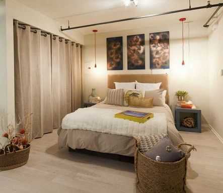 — Отделив непрозрачной шторой спальную зону в студии или общей комнате, можно в считанные секунды придать помещению презентабельный вид. Когда нагрянут нежданные гости, не придется судорожно заправлять постель и прятать личные вещи — достаточно будет задвинуть занавеску.
