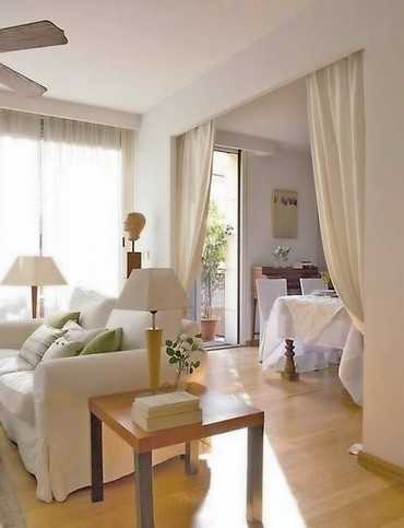 — Полупрозрачные светлые шторы, используемые вместо перегородок, не препятствуют движению света.