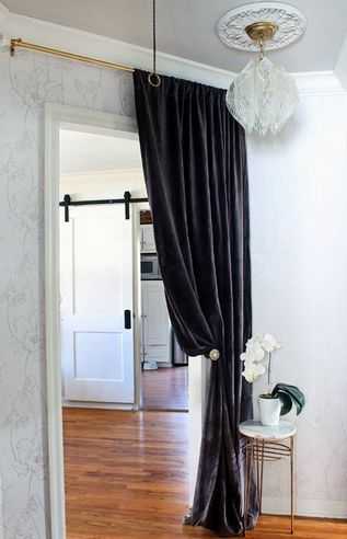 Использование тканевых драпировок вместо внутренних стен и дверей — это очень старая традиция, существующая с незапамятных времен. Появление и распространение легких и дешевых материалов, таких как гипсокартон, ДСП, МДФ и др. вытеснило тканевые решения из наших домов, но не навсегда. Выяснилось, что применение занавесок в качестве дверей, перегородок и визуальных разделителей в ряде случаев является более удобным и целесообразным. Сейчас этот способ оформления интерьеров вновь довольно популярен.