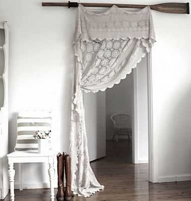 Это оригинальные занавески в дверной проем — крючком их может смастерить любой, владеющий техникой вязания. В доме такие шторы создают ощущение гармонии, уютную атмосферу.