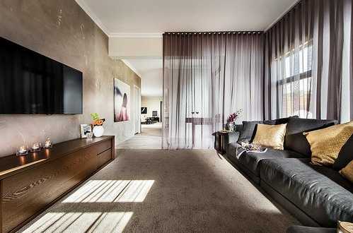 4. Штора для зонирования и разделения может быть выполнена как из тяжелой, так и из очень легкой ткани, включая вуаль или даже кружево.