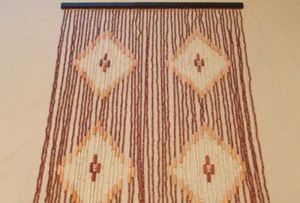 Это очень красивые изделия с прозрачными, немного тонированными бусинами – например: розовыми и белыми. Такие шторы легко создать своими руками: подготовить нужное количество бусин, а затем нанизать их на прочную леску, закрепив каждый ряд на деревянной планке.