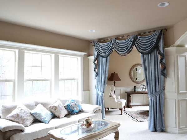 Совет: В больших помещениях, где имеется несколько дверных проемов, следует применять или одинаковые шторы, или абсолютно разные.