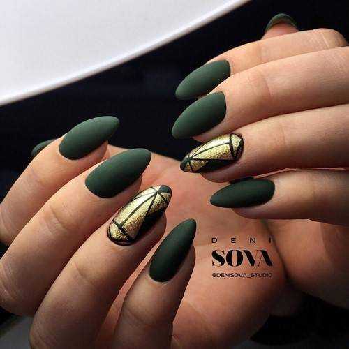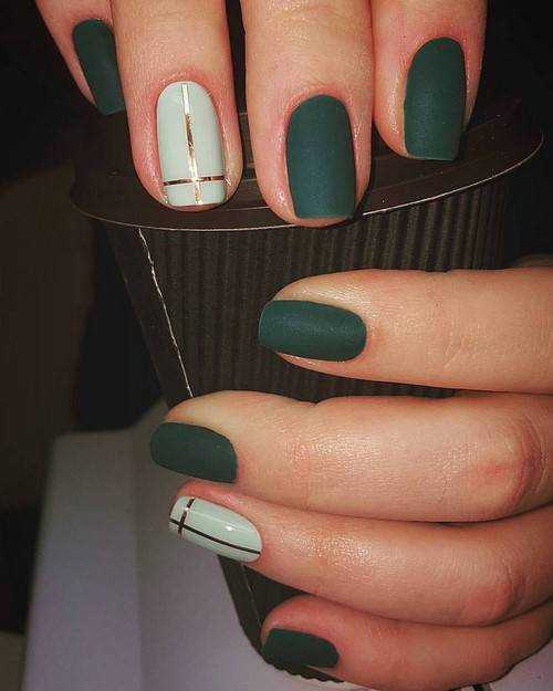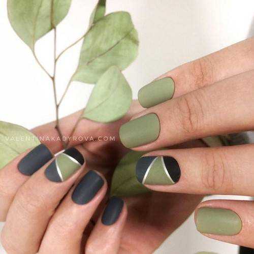 Матовые зеленые ногти 2019-2020 – неповторимое решение роскошного нейл-дизайна на вечер, выпускной, особое мероприятие, а в монохромном и элегантном исполнении с полосами, фигурами, точками – и на каждый день.