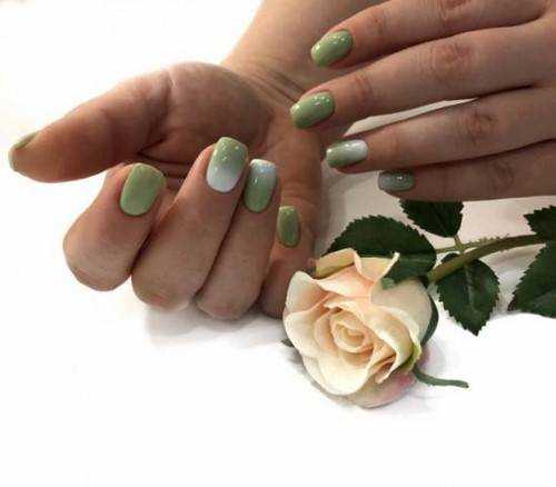 Зеленые ногти 2019-2020 с пудровыми элементами