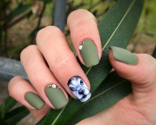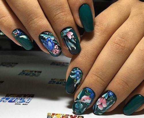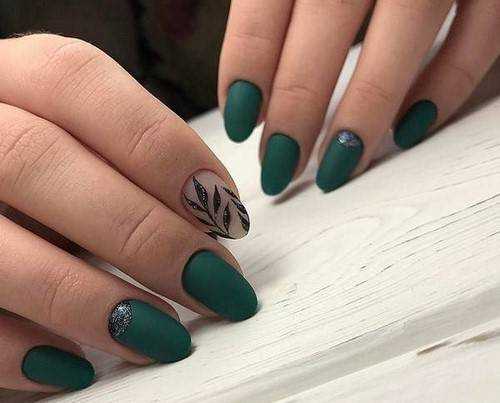 Дизайн зеленых ногтей 2019-2020 с рисунком