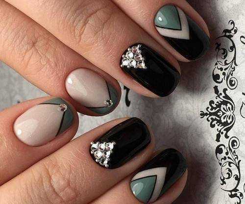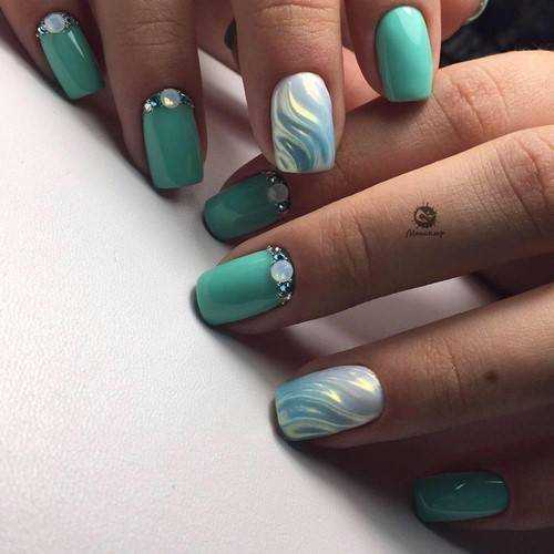 Зеленый дизайн ногтей 2019-2020 с камушками, бисером