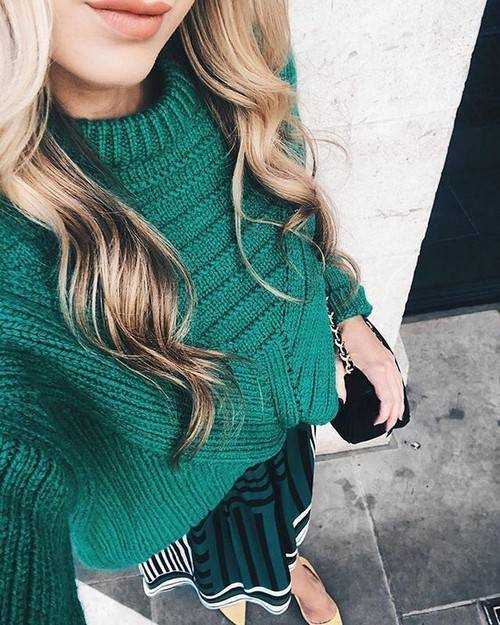 Пудра, как и вышеперечисленный декор, завоевала почтение многих модниц, ведь с ее помощью можно создавать чудный зеленый маникюр 2019-2020 с объемными узорами, вязаным дизайном, который так почитаем в зимнем сезоне.