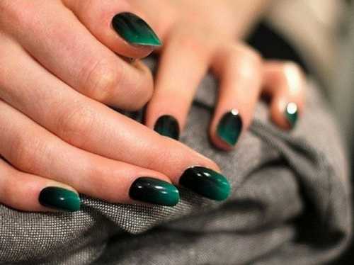 Благодаря таинственности и непревзойденности зеленого цвета, многие техники с легкостью можно реализовать именно с этим цветом обычных лаков, гель-лаков, шеллаков.