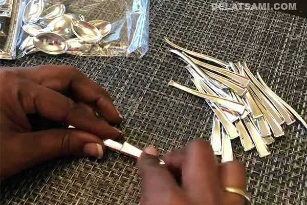 Круглую часть ложек сохраняем — они станут отличным материалом для другого проекта. А сейчас нам нужны только ручки от ложек.