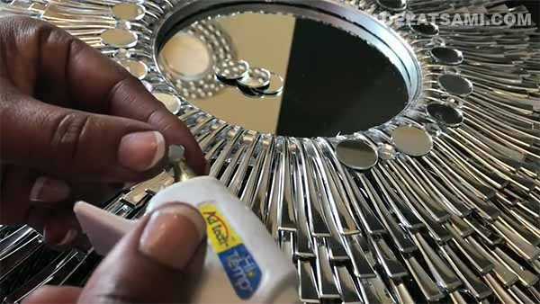 В зависимости от формы рамы, вы можете приклеивать лучи на одном уровне, или, как на этом фото, приклеивать их на разном уровне, сделав декор зеркала более объемным.