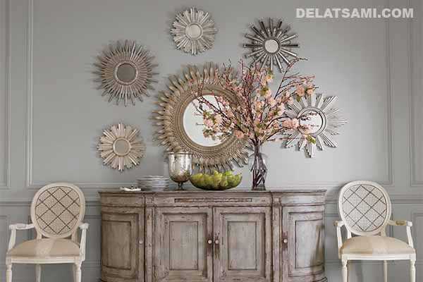 В одном стиле можно сделать несколько зеркал — все они отличаются только формой лучей. Но такая композиция будет на стене смотреться более эффектно и стильно.