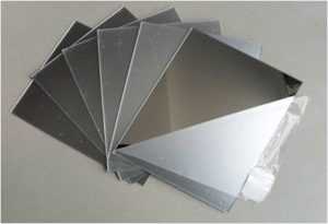 Самый актуальный и доступный вариант – алюминий. Его легче найти, использовать можно даже цельные листы. Единственный минус – качество отражения, небольшой срок службы и минимальная палитра для создания индивидуального оттенка. Однако металл достаточно прост в использовании, его легче полировать и будущее зеркало даже сможет держать самостоятельно форму. Для новичка наиболее удобный вариант.