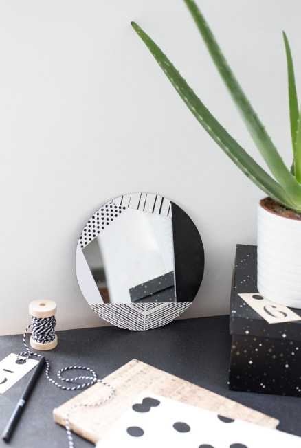 И все же лучше всего такое зеркало смотрится с рамой белого цвета. Само зеркало можно прикрепить с помощью промышленной двухсторонней ленты к раме, чтобы оно надежно держалось.
