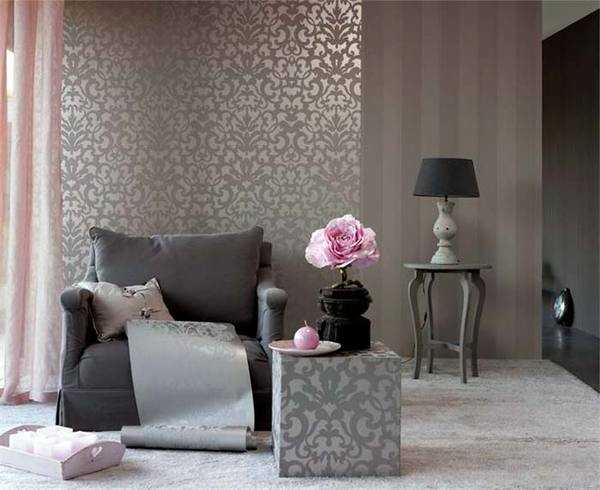 Универсальная стальная расцветка позволяет использовать такие обои в самых разных помещениях: