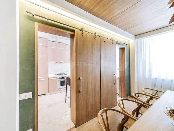 Раздвижные перегородки в интерьере кухни-столовой 27 кв. м.