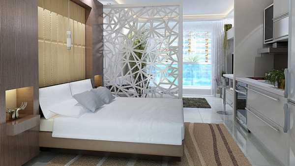 Вернемся к вариантам зонирования в спальне, совмещенной с общей комнатой.