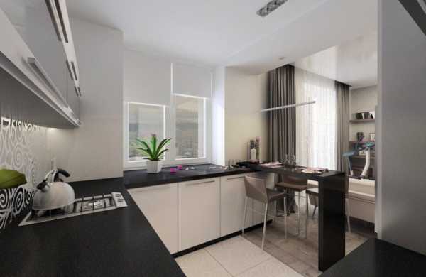 Отделить кухню от гостиной можно обеденным столом. Так переход между зонами будет более плавным. Еще один прием – установка дивана. Гостям будет удобно размещаться, а приготовление пищи не отвлечет от общения.