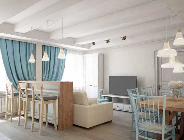 Пространство разграничивают с помощью занавесок или штор, гармонично подобранных по цвету и стилю.