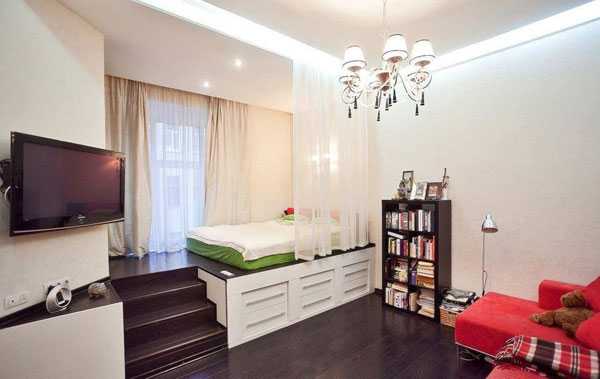Подиум помимо визуального разграничения комнат может выполнять и практические функции.